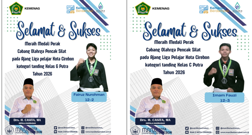 Minggu (8/2), siswa MAN 2 Kota Cirebon kembali menorehkan prestasi membanggakan dalam Ajang Liga Pelajar Kota Cirebon. Pada kompetisi tersebut, dua siswa MAN 2 Kota Cirebon berhasil meraih medali perak pada kategori tanding putra.
